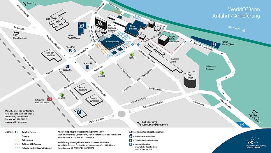 Charles-de-Gaulle-Straße, 53113 Bonn, wenige Gehminuten zum WCCB direkt am Rhein.