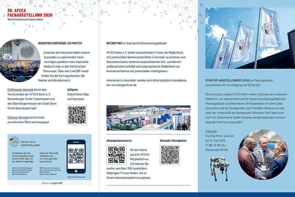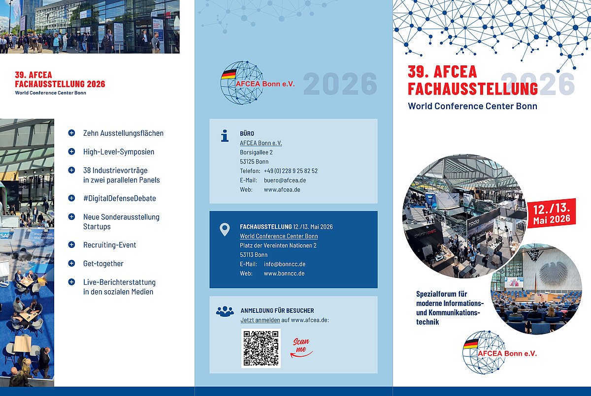 anbei finden sie den Einladungsflyer zur AFCEA Fachausstellung 2026 für Sie und Ihre Geschäftspartner