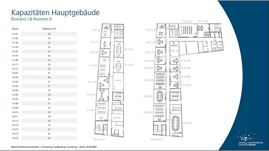 Im ersten und zweiten Obergeschoss befinden sich 24 flexibel nutzbare Büros/Bessprechungsräume mit einer Größe von 20 m² bis 70 m². Die Räume können für den 11., 12. und 13. Mai 2026 durch Aussteller gebucht werden.