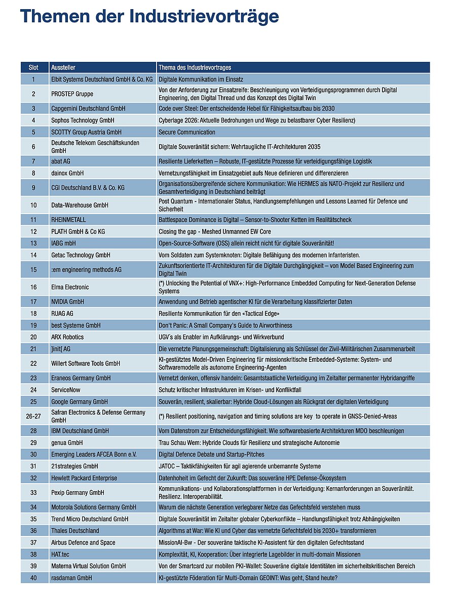 Programm der AFCEA Fachausstellung 2026